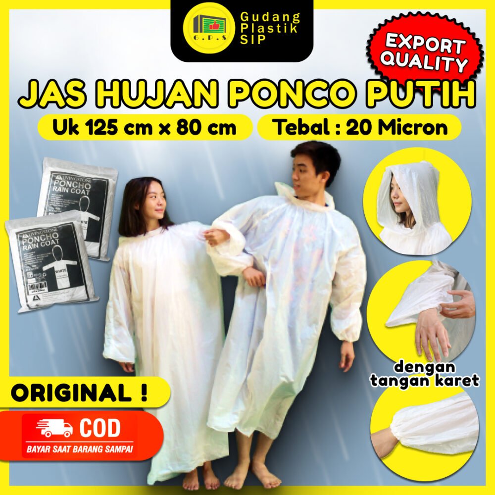 Jas hujan ponco yaitu terdiri dari jaket dan celana, cocok untuk pengendara sepeda motor karena lebih leluasa bergerak.