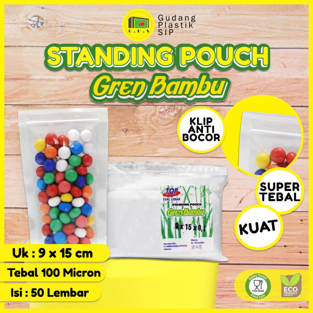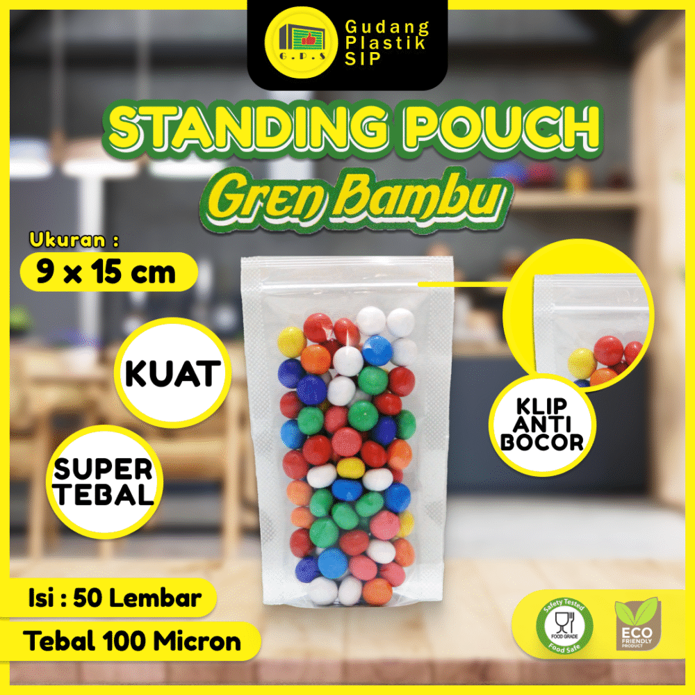 PLASTIK STANDING POUCH 9X15 CM / PLASTIK KLIP BERDIRI ISI 50