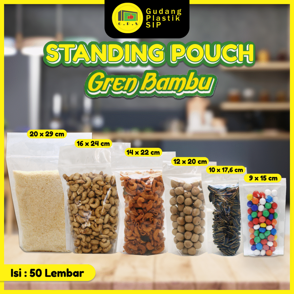 Plastik Standing Pouch (Plastik Klip) sangat cocok digunakan untuk kemasan makanan ringan agar produk terlihat lebih rapih dan menarik. Kemasan dapat di buka tutup berulang kali dengan adanya zipper lock/klip yang memastikan makanan di dalam tetap terjaga kualitas dan kehigenisan nya. Plastik lebih kuat dan tidak mudah robek dikarenakan sudah dilengkapi dengan double seal/seal lebar