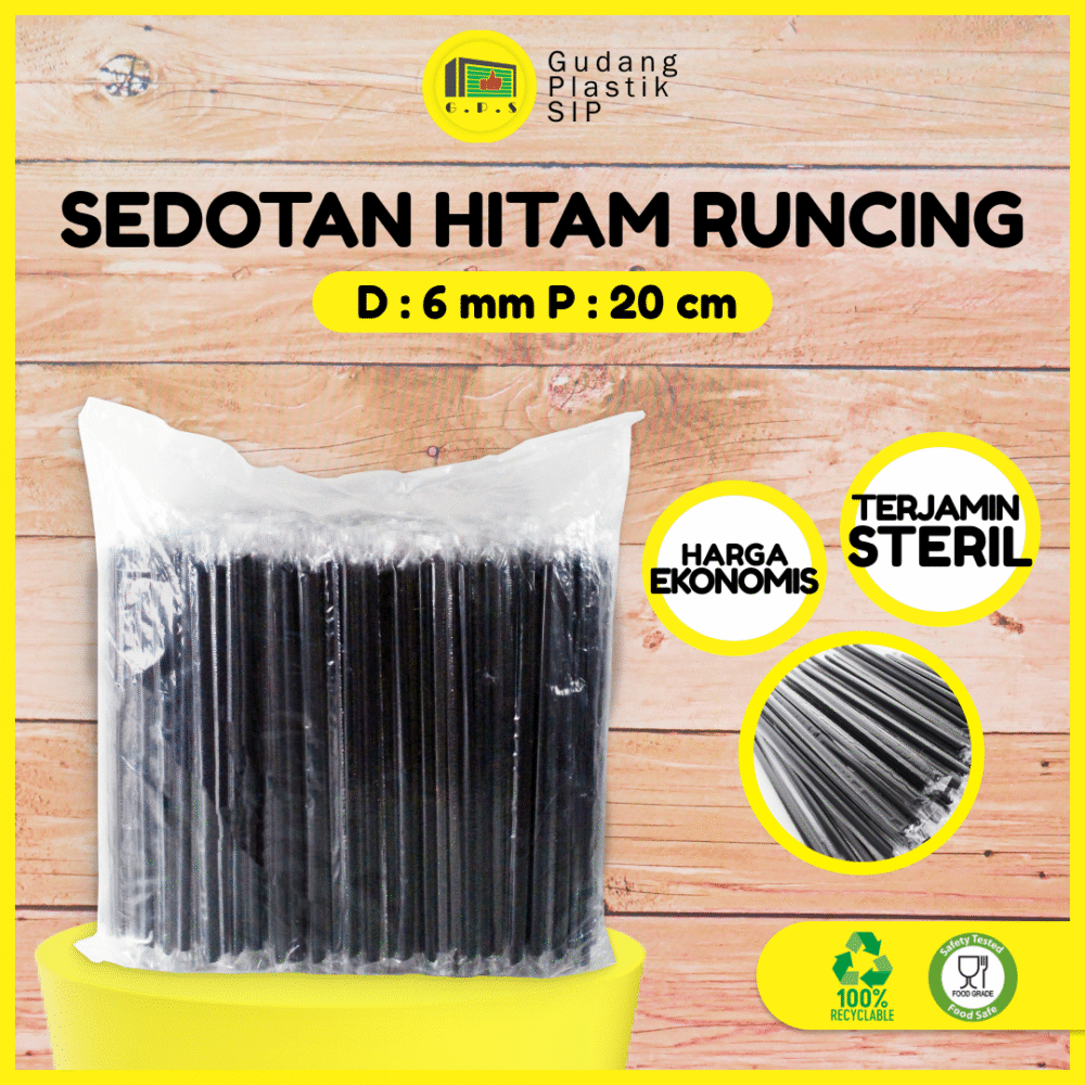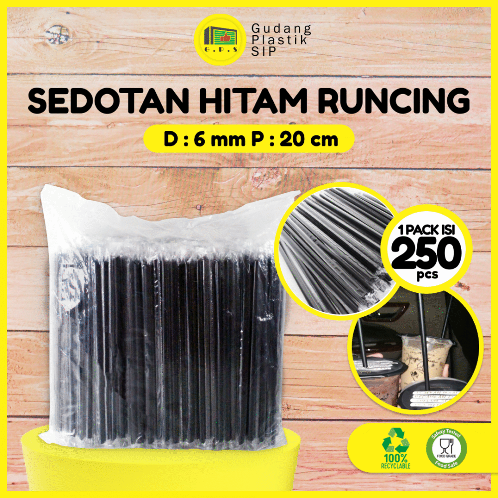 Sedotan Hitam Runcing dengan kualitas premium, sangat cocok untuk kebutuhan usaha ataupun rumah tangga Anda, Plastik tebal dan ujung runcing membuat Anda maupun Konsumen mudah dalam menggunakan nya. menggunakan Bahan PP dengan proses Produksi yang streril dan Higenis. Setiap Sedotan di bungkus secara Higenis dengan Plastik berbahan Food Grade
