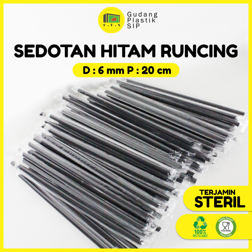Sedotan Hitam Runcing 6mm x 20cm / Higenis Steril (250pcs)
